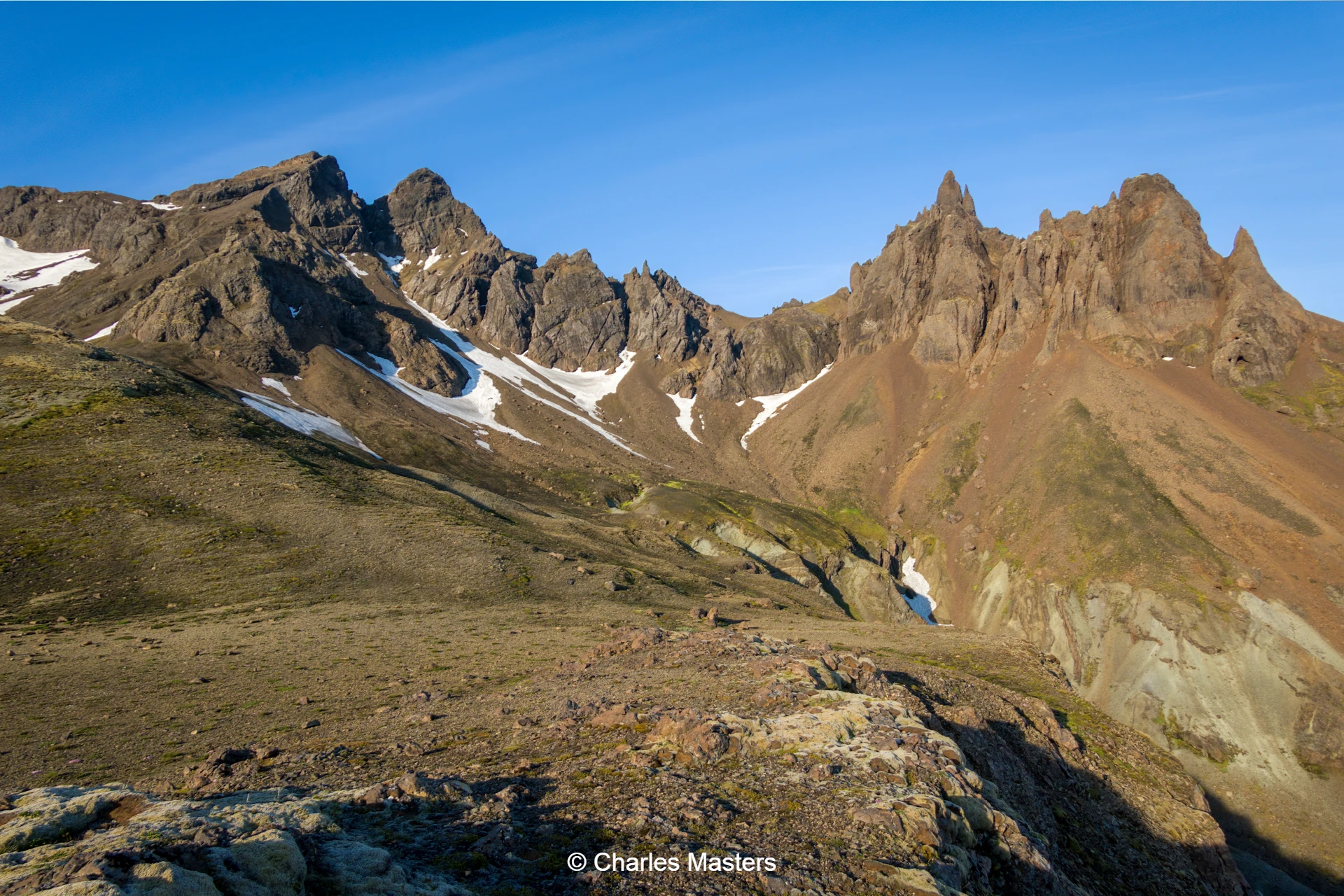 The final day begins with a climb along a narrow trail bordering the screes of Færneseggjar, ascending to a pass on the Kjósareggjar ridge. The scenery is breathtaking, boasting colourful rhyolite mountains, glacier-filled valleys, and sharp summits. From the 1,150-metre-high pass, the group enjoys vistas of Iceland’s highest peak, Hvannadalshnúkur, and the formidable Öræfajökul volcano.