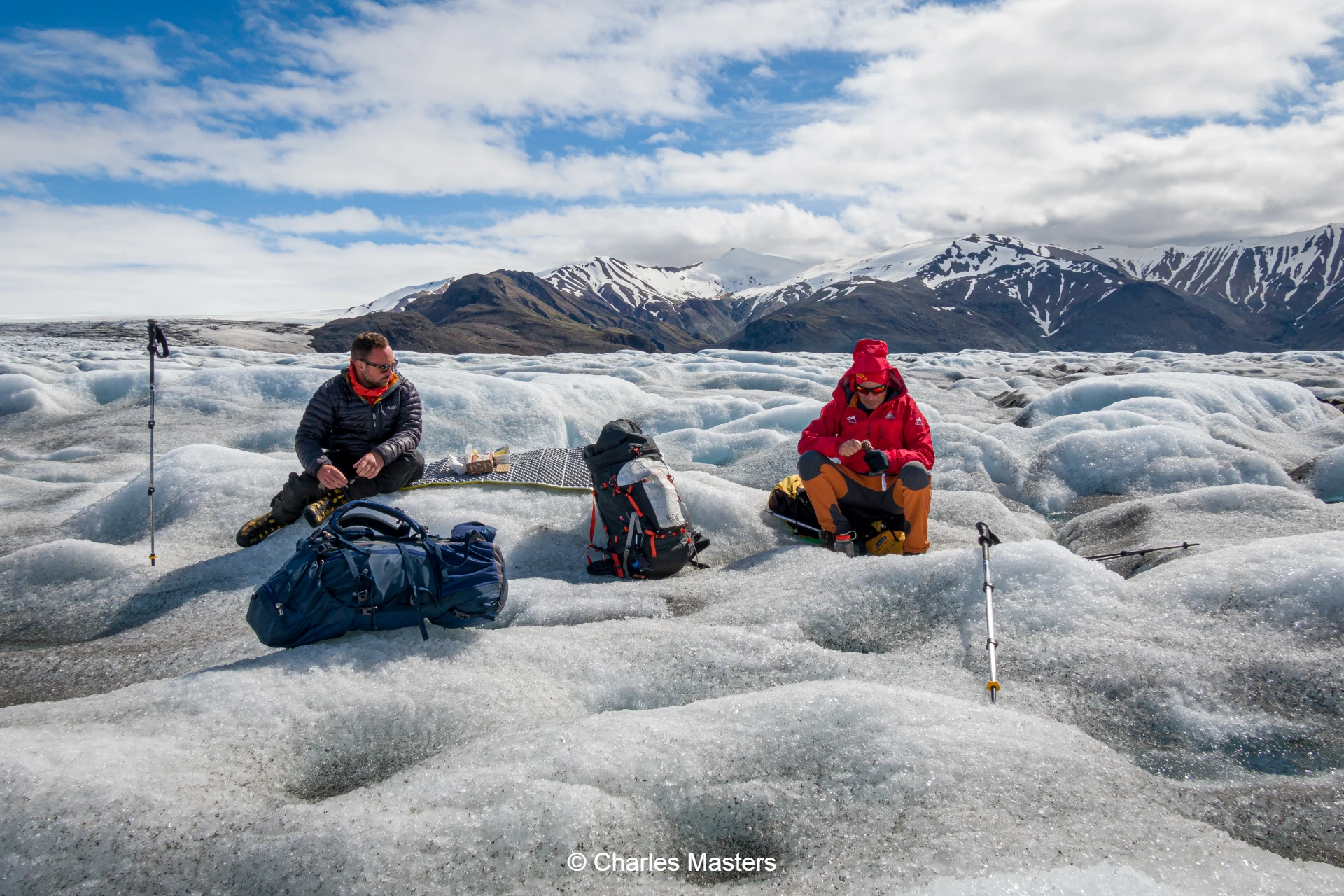 After about 10 kilometres, the group enters Norðurdalur—a valley dominated by ice—and carefully navigates around several crevasses before reaching solid ground. The day ends with camping at 'the Balcony', renowned as one of the world’s most spectacular campsites and offering superb views of the route just completed. This challenging day involves an eight-hour, 16-kilometre walk.