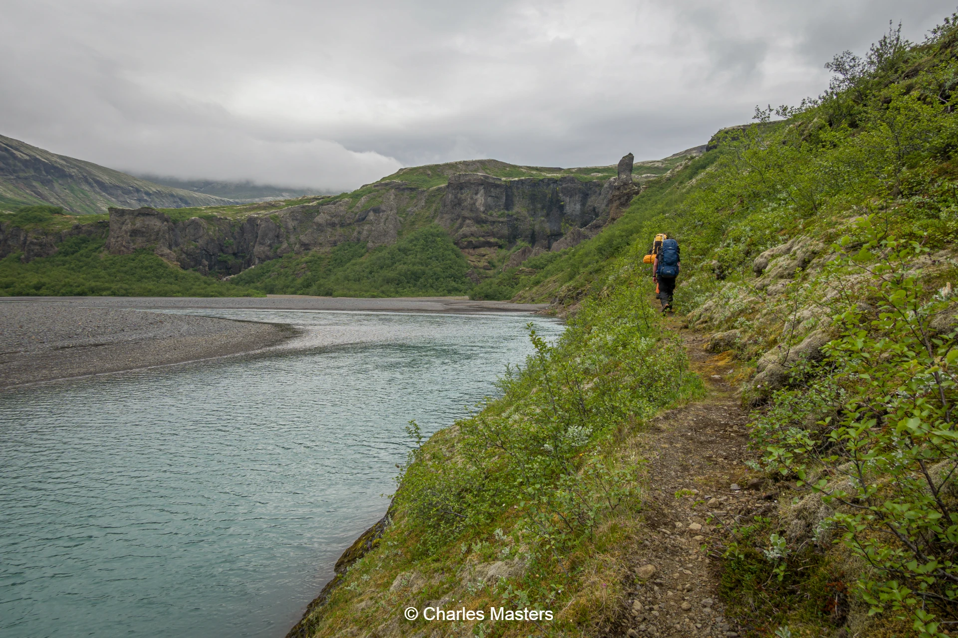Following the Núpsá river to another waterfall, the path then ascends a steep gulley, reaching the high plateau of Sléttur. Here, remarkable lava pillow formations await. The day concludes with an overnight camp at Sléttur after a seven-hour, 12-kilometre walk.