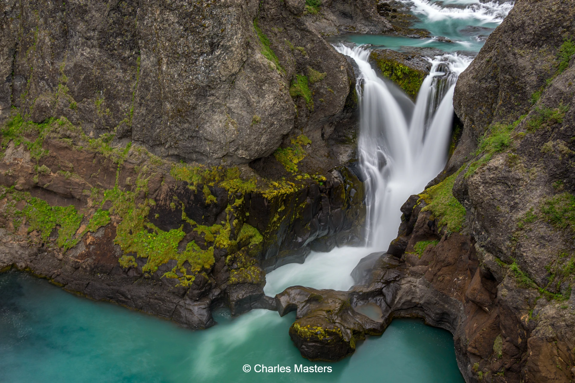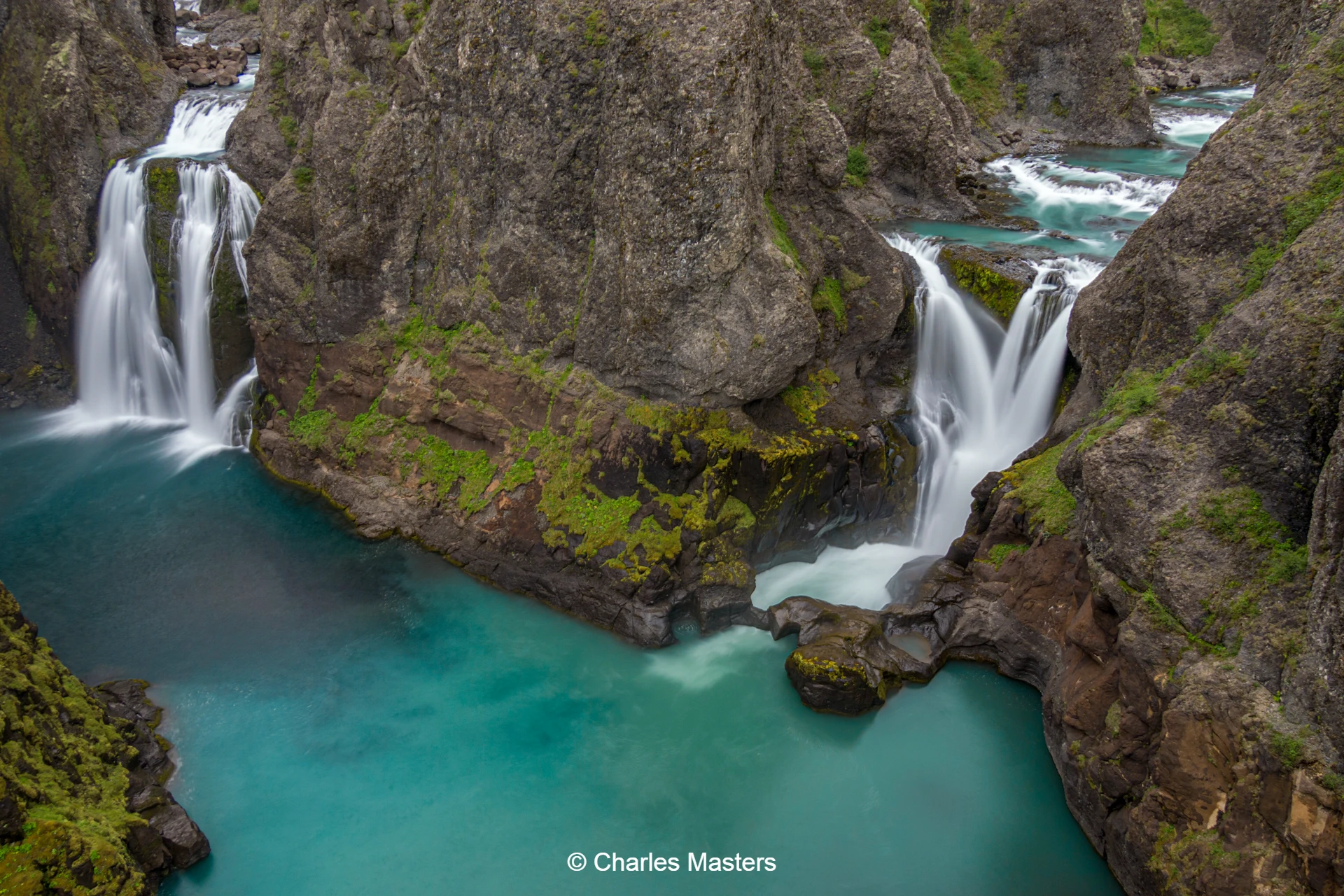 The first day commences at the entrance to the Núpsstaðarskógar valley, with the route tracing impressive cliffs and winding through dramatic side canyons. The group undertakes a 10-metre rock climb, assisted by a chain and rope for safety, leading to the striking double waterfall of Tvílitihylur, where two falls merge into a single powerful river.