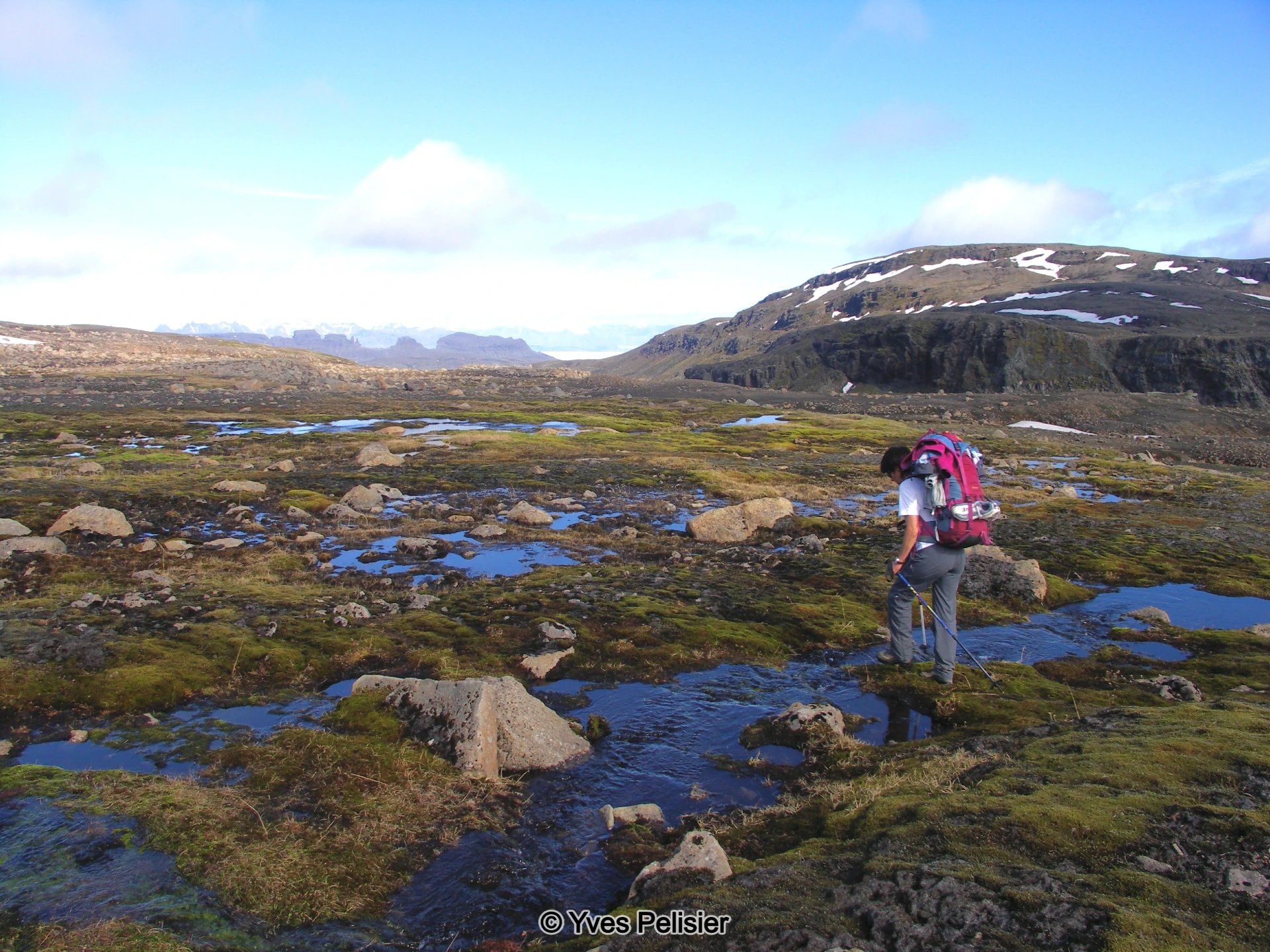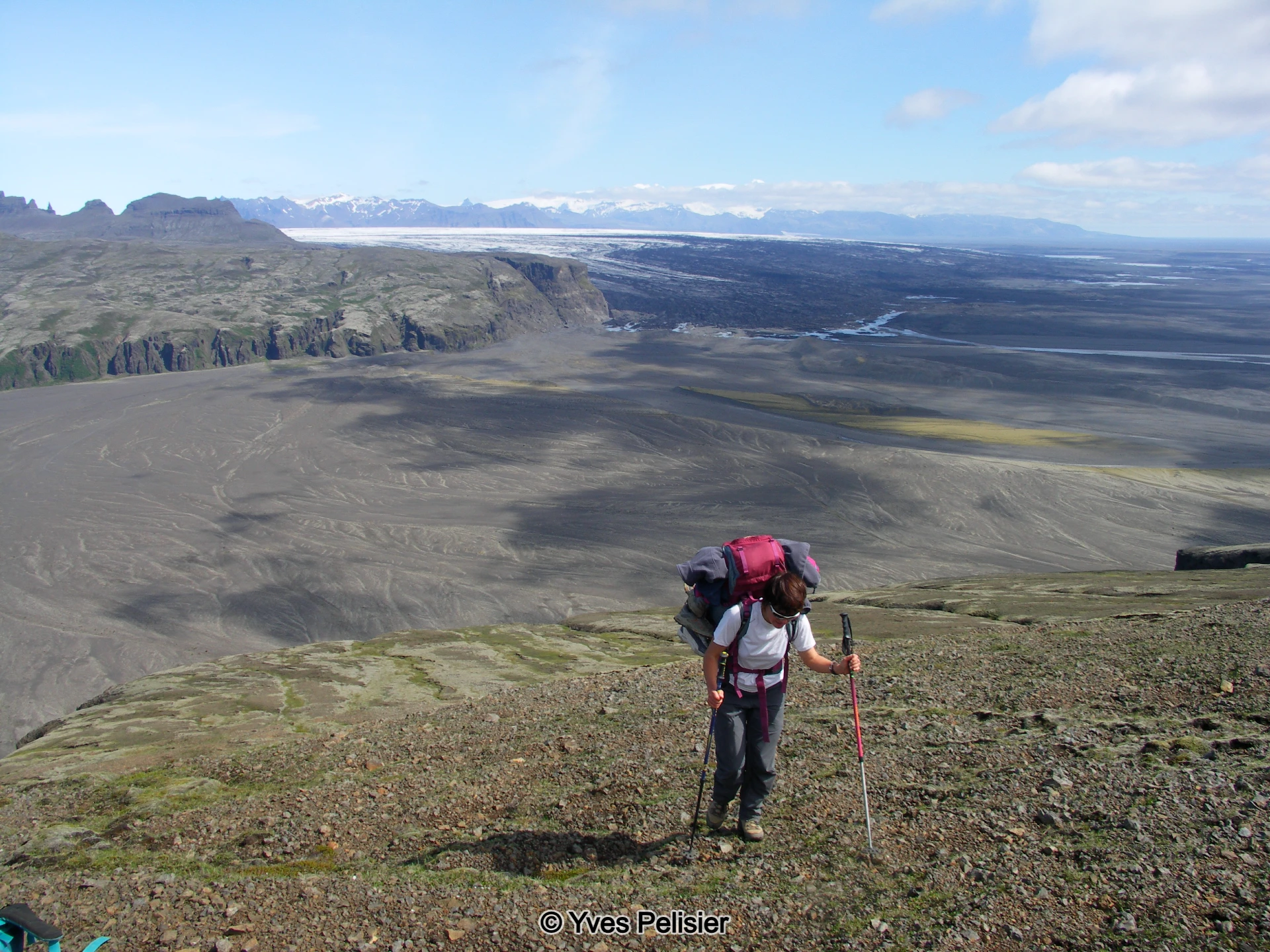 The highlands south of Vatnajökull glacier present a truly spectacular array of natural features. This area boasts dramatic lava fields, deep canyons, moraines, valleys, waterfalls, serene lakes, cold springs, imposing mountains, glacier outlets, lively creeks, and both spring and glacial rivers. Amidst this rugged terrain exists a delicate arctic flora, several hardy bird species, and the elusive arctic fox. The trek through this remote region unveils hidden landscapes that remain untouched by vehicles, and only a select few backpackers and shepherds have travelled these paths. Often, the journey is marked by a rare solitude, with little to no encounters with other people along the way.