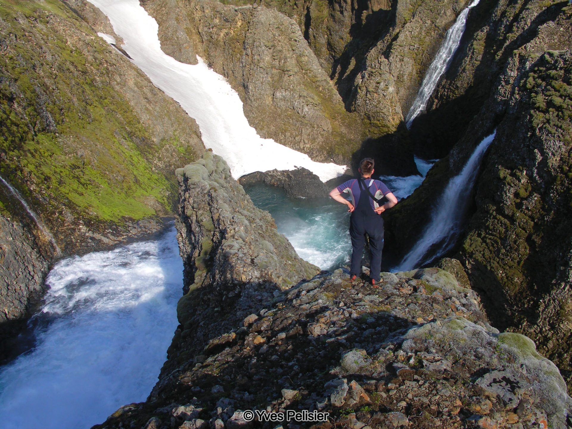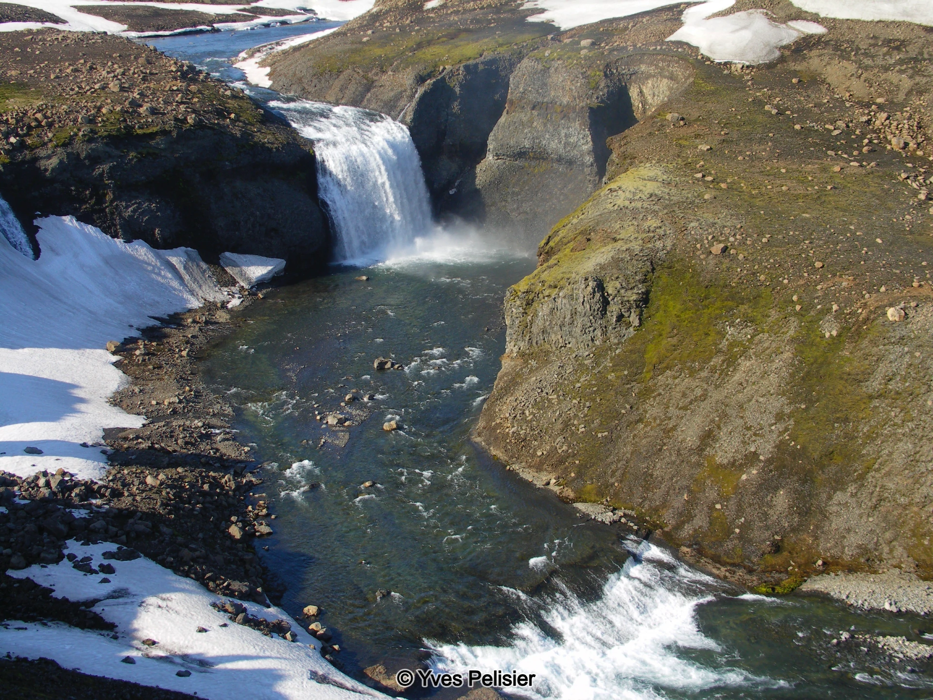 The first day’s walk follows the glacial river Djúpá, which carves through thick layers of lava deposited by past eruptions. Early along the route, the group encounters the first waterfall on Djúpá, as well as picturesque side streams and a small lake. The trail passes the opening of Hrafná canyon and continues to Lambá canyon, where the group camps overnight. If the weather is favourable, there may be an opportunity for an afternoon walk to explore Lambárgljúfur canyon. The day covers 10 km, with a total elevation gain of 150 metres.